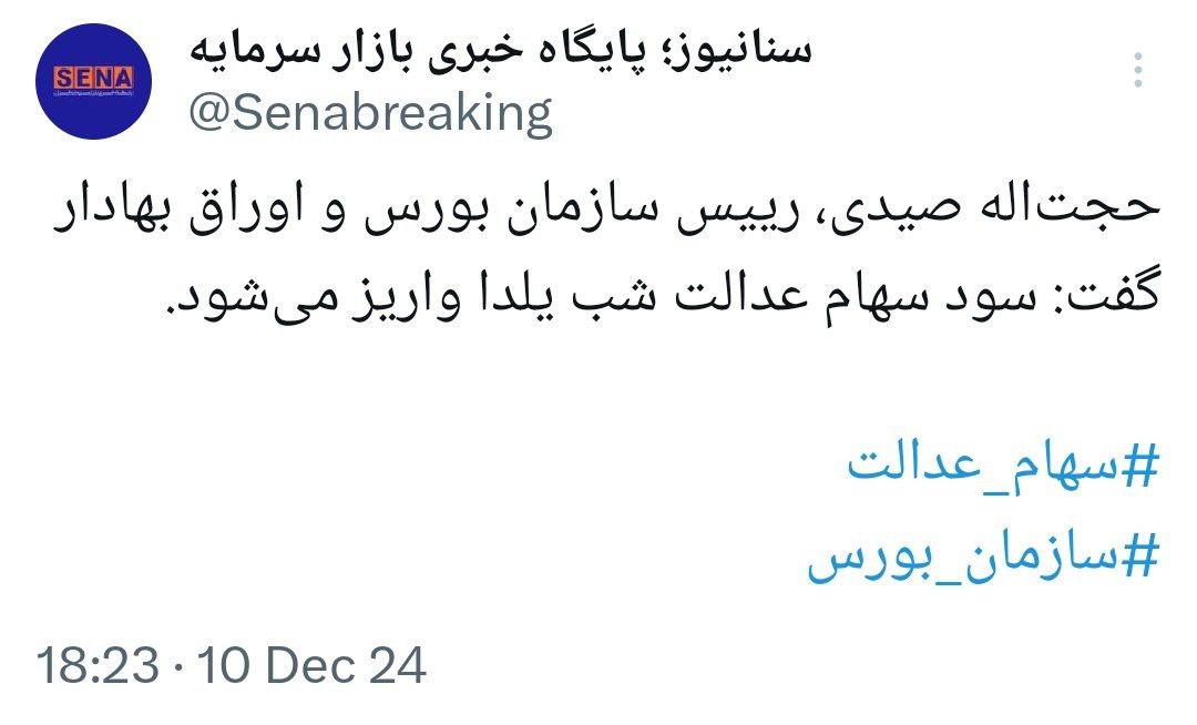 رئیس سازمان بورس: سود سهام عدالت شب یلدا واریز میشود