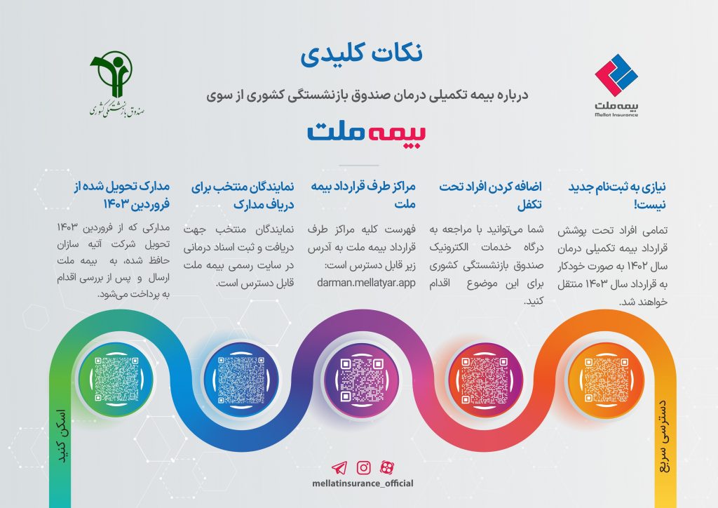آنچه درباره بیمه تکمیلی درمان بازنشستگان صندوق بازنشستگی کشوری از سوی بیمه ملت باید بدانید+ اینفوگرافی